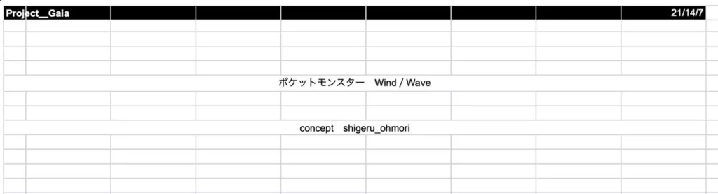 明らかに実験的で初期段階ではあるものの、2021年7月に作成されたこの脚本は、ガイアの中核となる柱のほとんどを確立している。それは、無限の進歩、環境のバランス、世代間の責任、プロシージャル生成の世界、中心となる進化するポケモン、そして非線形構造である。